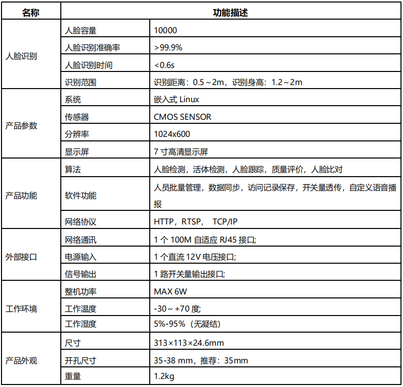 ? 支持斷網人臉識別,斷網開閘; ? 200 萬像素,1920×1080 分辨率;