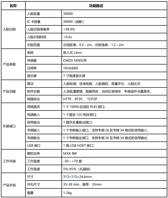 ? 人臉識別準確率高達 99.9%; ? 人臉識別速度小于 0.6 秒;